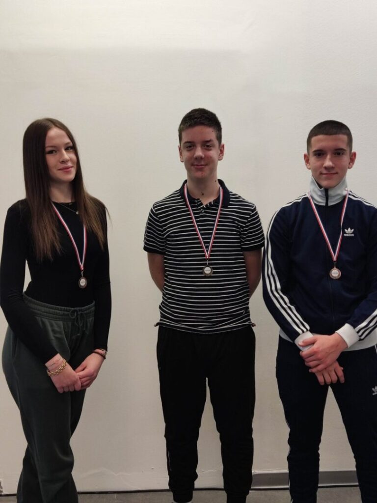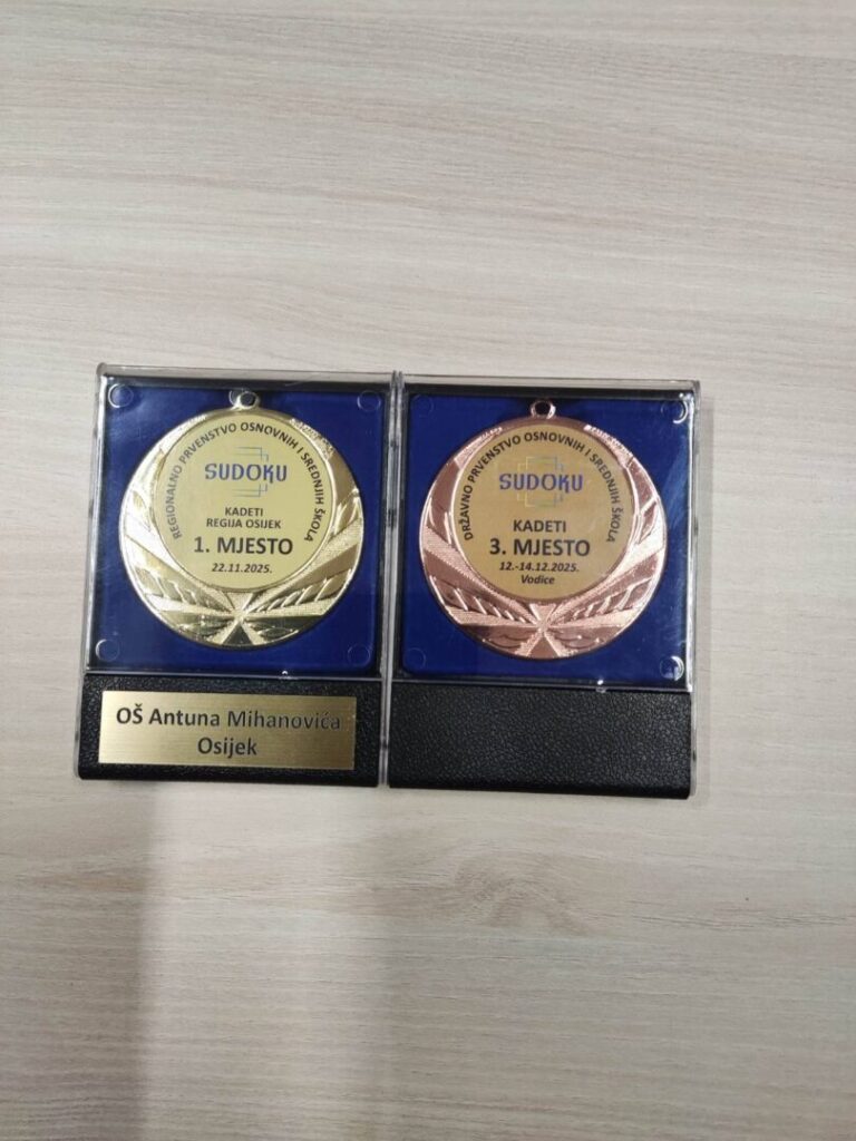 Učenici naše škole Ana Žaja, Aleksandar Crevar i Borna Delaš osvojili su treće mjesto ekipno u kategoriji Kadeti na državnom sudoku prvenstvu održanom od 12.-14. prosinca u Vodicama. Ovo je treća godina za redom kako naši učenici u ekipnoj konkurenciji osvajaju prvo mjesto u regiji i treće mjesto na državnom prvenstvu uz sve uspjehe koje su postigli u pojedinačnoj konkurenciji. Čestitamo cijeloj ekipi na postignutom uspjehu!